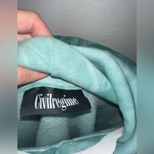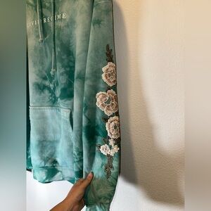 Civil Regime Aqua Marble Rose Embroidered Hoodie NWOT Size Large