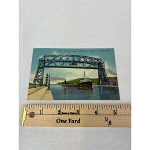 Vintage 1950s Duluth-Superior Harbor Postcard Ore Boat & Lift Bridge Raised