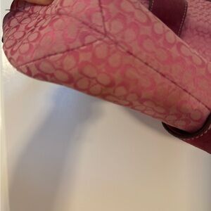 COACH Pink monogram canvas leather shoulder bag purse 12x7x3" suede.