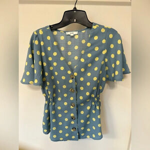 Boutique Blue Yellow Polka Dot Top