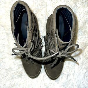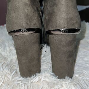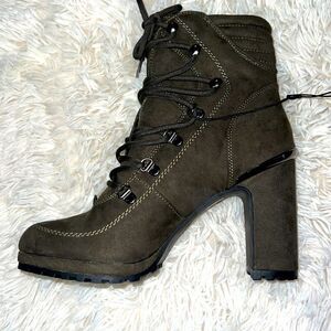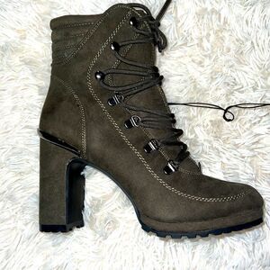 DNKY boots, forest green suede material, 5 inch heel