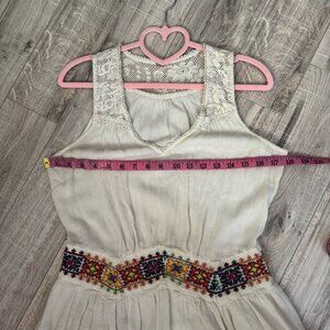 Free people dress Aztec embroidered embroidery cream white boho hippie flowy