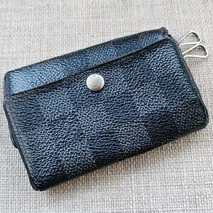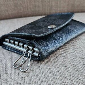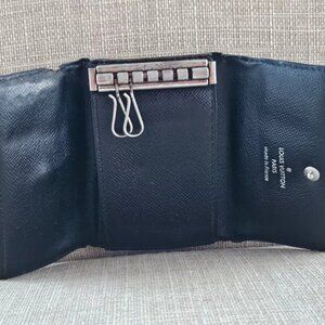 Louis Vuitton Paris Keychain Keyfob Black/Gray Leather Key Holder Made in France