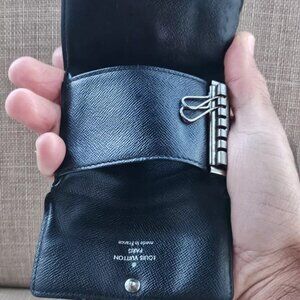 Louis Vuitton Paris Keychain Keyfob BlackGray Leather Key Holder Made in France