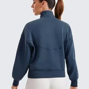 CRZ YOGA Women Half Zip Sweatshirt Long Sleeve Pullover w/ Pocket Size M