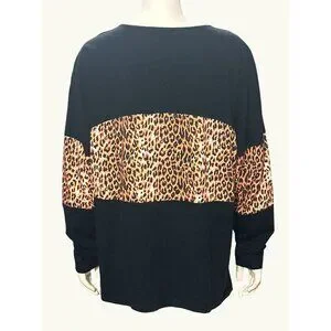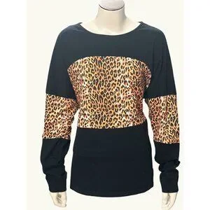 Embrace urban sophistication with this chic black top featuring bold leopard print accents. Perfect for city outings or casual gatherings, this long sleeve top combines comfort with a touch of wild charm. Its relaxed fit and eye-catching design make it an essential statement piece for any wardrobe.