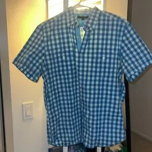 Men’s Blue Checkered Banana Republic Short Sleeve