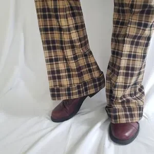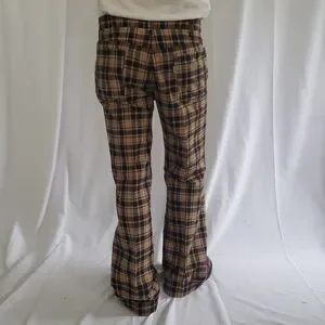60s/70s Levi's Brown and Blue Plaid Pleated Flare Pants
