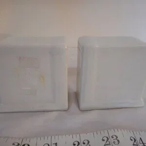 no obvious imperfections, there is a light craze line on the top of the Lincoln shaker, there is also sticker residue on the back of the cabin shaker. Will leave clean up to you