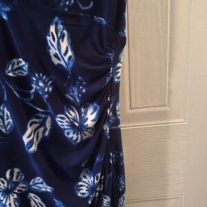Blue and white flowered Ralph Lauren dress size 12. Cap sleeves with empire waist and ruched side. Pit to pit 20.5” and length is 44”. Great pre-loved condition.