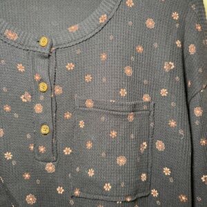 Madewell Henley Women's SM Navy Blue Ditsy Floral Prairie Thermal Casual Sweater