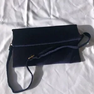 Anthropologie Navy Velvet Clutch Bag