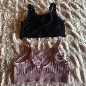 Super soft, light/medium support sports bras. Tags were cut off the bra but never worn. Bundle includes both sports bras. 1 black 1 pink.