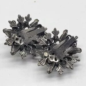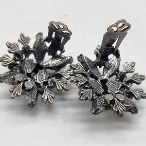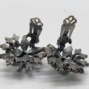 These earrings are much older and have wear, marks, and scratches. Some tarnish and color loss to silver tone. Needs some cleaning.
