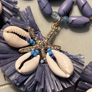@4silverdesertan So I do have some periwinkle beads. In the process of making some now. A few different pairs. The necklace is the focal point, so the earrings won’t take away from the necklace. I am still looking to see if I have anything similar to the gold starfish with rhinestones. I didn’t want you to think I forgot about you!