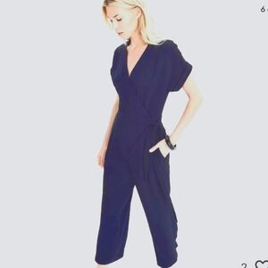 Banana Republic Navy Blue Jumpsuit. Snap & wrap front. Side pockets!