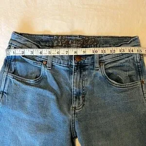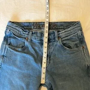 Perfectly broken in with no stains, frayed hem or holes. Medium wash. See photos for measurements.