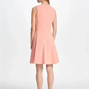 NWT DKNY Fit And Flare Peach Midi Sleeveless Dress Pockets Formal Casual Size 4