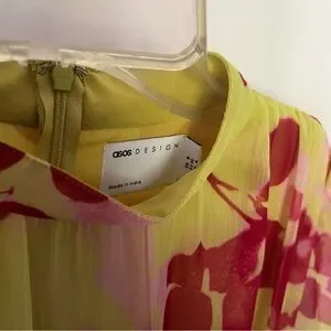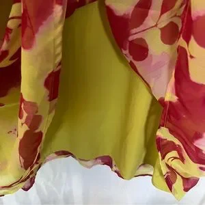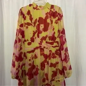 Floral long dress with ruffle bottom. Long sheer sleeves. Zip back. Slip sewn in. NWT