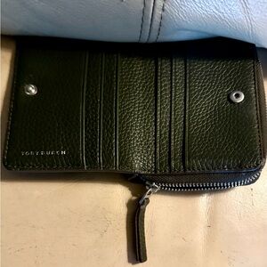 Tory Burch Emerson Wallet. Beautiful deep green pebbled leather. No Flaws.