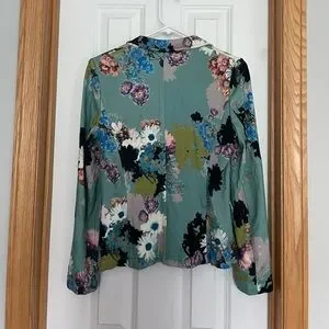 ETRO Knit Blazer Floral Print Turquoise Size 42 US Size 6