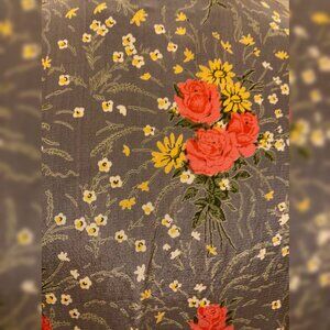Vintage 1940s-style rayon cap sleeve grey floral dress with smocking