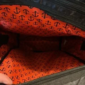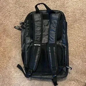 Older flag nor fail backpack - one of the first that they made. Good condition except a small tear on the front left side of the packpack as pictured. Has two large zip compartments, plus one on the back and one on the top. Mesh pocket on the side.