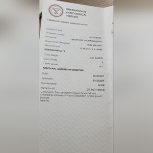 New 3ct Outstanding IGI Certified Lab Grown Diamond, 14k White Gold !!!!!