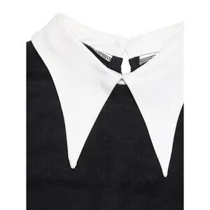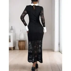 Sexy Lace Contrast Collared Neck Long Sleeve Midi Cocktail Dress in Black and White. Perfect for a date night.