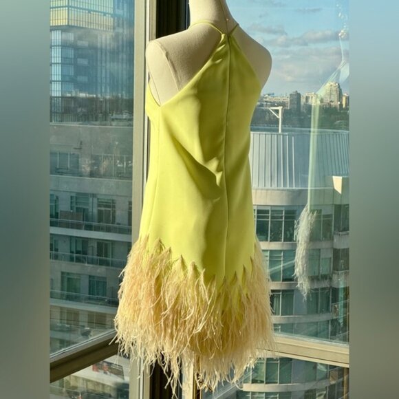 🆕 ALEXIS 🧿 NWOT Bristal Feather Trimmed Mini Dress, Yellow, Sz XS