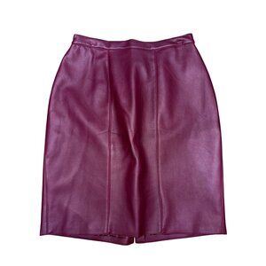 CCC Vintage Burgundy Faux Leather Pencil Skirt Decorative Button Liner Size Larg