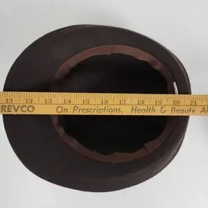 Measurements: 8" x 7" hat 11.5" x 10.5" with brim