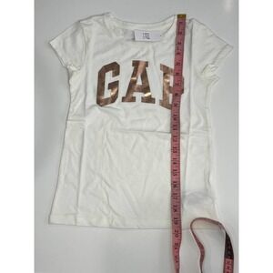 Gap Logo T Shirt Girls White and Gold Sz M NWT