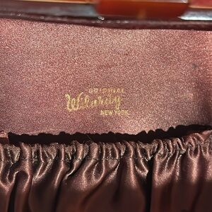 A fabulous throwback to the 1950s! This signed Wilardy lucite purse or handbag is just wonderful. With its marbled caramel or butterscotch coloring and rounded box shape, it makes a great statement and is an icon of mid century fashion.