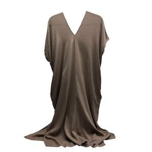 Neuflora Women's Linen Blend Midi Dress Size Small Taupe V Neck Pockets