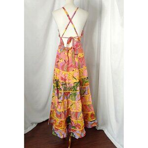 FARM Rio Maxi Dress XL Mixed Prints Floral Tiered Strappy Halter Pink