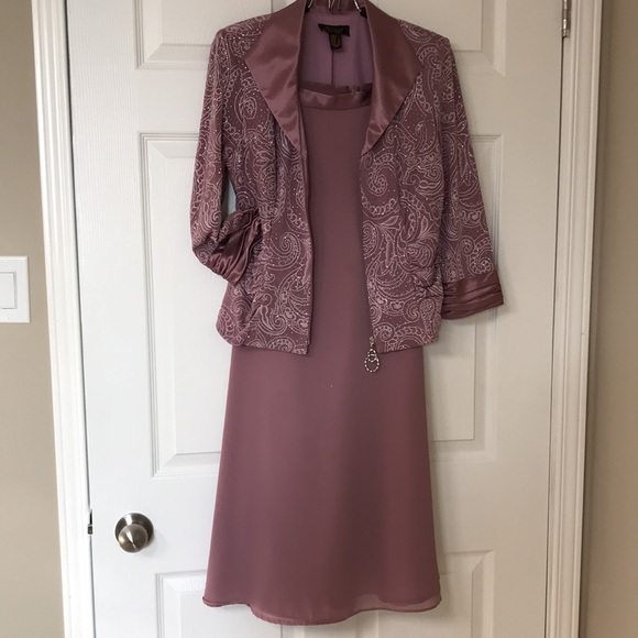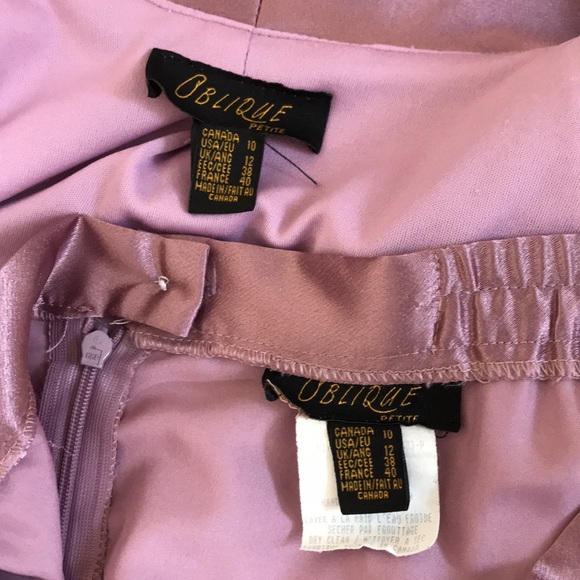 Oblique 2 Piece Sparkly Crepe Chiffon & Satin Dusty Rose Jacket & Skirt; Size10