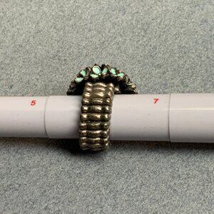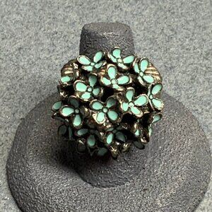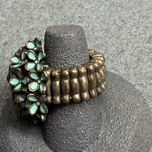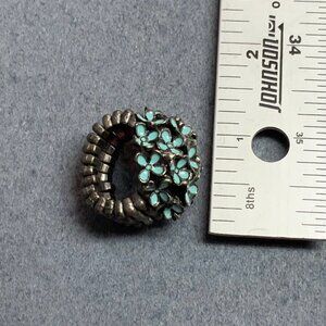 Flower Cluster Stretch Ring Size 6 Turquoise Blue Enamel Antiqued Silver Vintage
