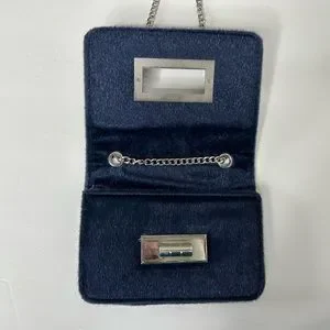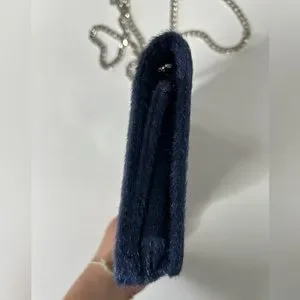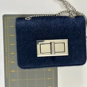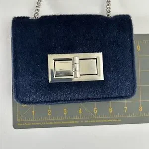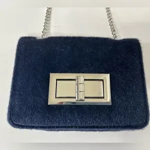 Navy Blue Urban Expressions Jubilee Vegan Faux Calf Hair Clutch. Silver toned hardware and chain. Long enough for crossbody styling. In good preowned condition with no rips, holes, stains or tears. Approximately 7.5” long x 5.5 wide x 1.5” deep.