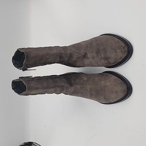 AQUATALIA Taupe/Gray-Brown Suede Mid-calf Boots with Diamond Quilting Detail, 7