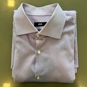 Hugo Boss ‘Miles’ Sharp Fit Dress Shirt in Purple Check | Size 17L
