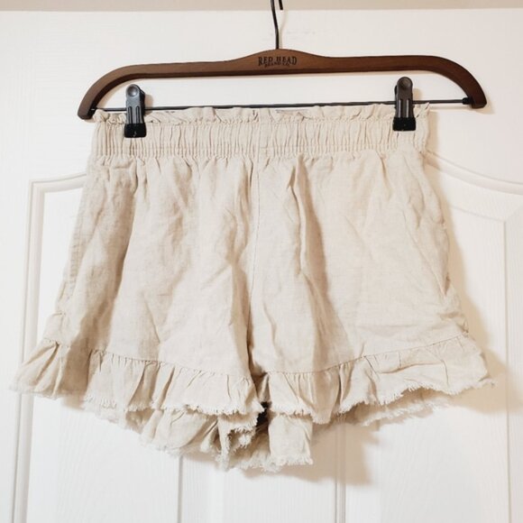 Aerie Linen Lyocell Oatmeal Raw Hem Boho Shorts S