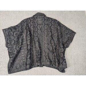 Andrea Jovine Black Lace Jacket With Linen Collar And Trim "Diamond" Accents Lrg