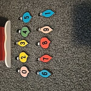 Includes ten heavy cardboard two-sided number ornaments - extra number ornaments can be stored in the compartment on the back