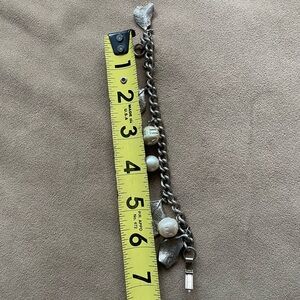 Vintage Leaf Chain Link Pearl Dangle Charm Bracelet Silver