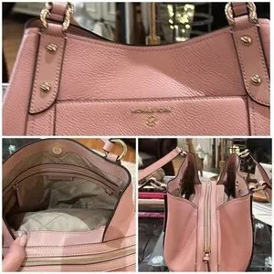 Authentic Michael Kors “Molly” Large Pebble Leather Shoulder Tote in Smokey Rose