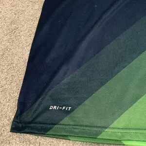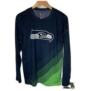 Show your team pride with this Nike Seattle Seahawks long sleeve Dri-Fit T-shirt in size S. Perfect for any Seahawks fan, this shirt features the iconic team logo on the front and is made with Nike's Dri-Fit technology to keep you cool and comfortable. The blue and green color scheme adds a bold touch to your game day outfit. Whether you're cheering from the stands or watching at home, this shirt is a must-have for any fan.