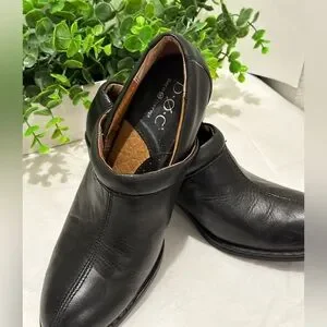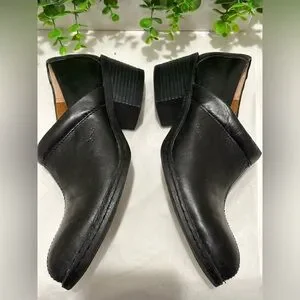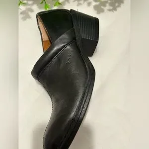 BOC Born Clogs Womens 7,5 Black Leather Block Heel Mules Shoes BC9546
