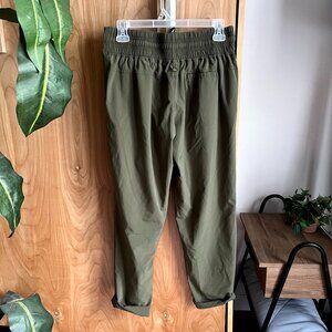 Prana Tie-Waist Athletic Olive Green Women's Pants - Small Pull-On Cropped Leg