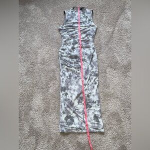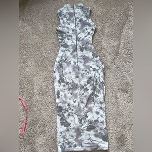 Windsor flocked mesh mock neck midi dress medium gray & white
